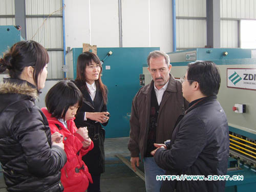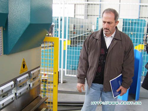 Haiyl A.AI Rawy先生對中國機械行業(yè)尤其是剪板機折彎機非常的熟悉,他表示他們非常重視機器的質量,來中德也是由于中德機器在海內外都享有良好的聲譽。參觀前,Haiyl A.AI Rawy還特意詢問我們在阿聯(lián)酋有沒有代理,當公司領導回答說目前還沒有時,他釋然一笑,表示希望能夠與中德建立良好的合作關系。在中德的成品車間,Haiyl A.AI Rawy先生聽取了我公司營狀況及近遠期規(guī)劃的介紹,并就每一款機床的詳細情況進行了介紹,重點詢問了其性能及售價等。他對我們的數控折彎機尤其感興趣,要求當場進行測試。Haiyl A.AI Rawy特意讓自己的助理拍下了整個操作過程,在我公司工程師的幫助下,Haiyl A.AI Rawy還進一步了解了折彎機數控系統(tǒng)的編程方面的問題。