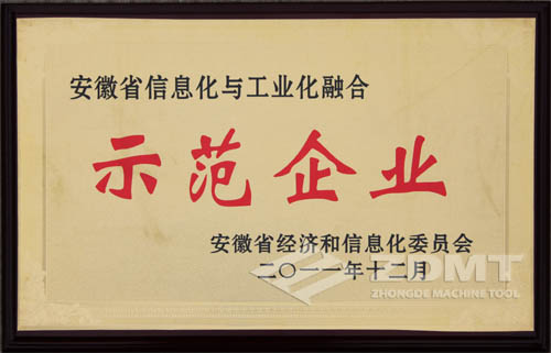中德機(jī)床獲安徽省“信息化與工業(yè)化融合示范企業(yè)”稱號