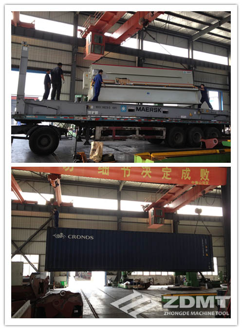 公稱壓力600噸、折彎能力長(zhǎng)達(dá)7米的折彎?rùn)C(jī),以及剪切12mm、寬度6米的剪板機(jī),其重量和體積遠(yuǎn)遠(yuǎn)超過了一般的海運(yùn)貨柜規(guī)格。尤其是折彎?rùn)C(jī),重量超過了70噸,沒有過硬的技術(shù)和質(zhì)量,難以承接這樣大型設(shè)備的定做;加上機(jī)器出口,還要考慮如何拆裝運(yùn)輸以及到港之后如何安裝調(diào)試等多方面的因素,更是對(duì)工廠大型設(shè)備出口經(jīng)驗(yàn)?zāi)芰Φ目剂俊?/p>